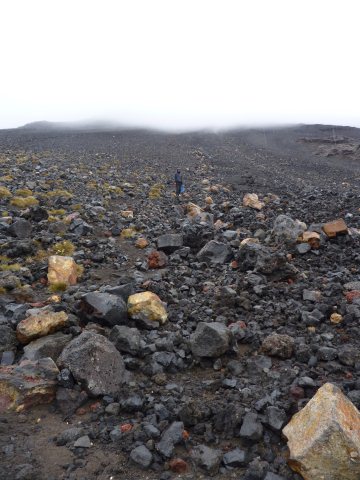 The path up there was one of the most strenuous hikes I’ve done in a long time. I count it up there with the Inca trail in Peru and climbing Mt. Fuji in Japan. My whole body ached for days after it was done. And it was only the beginning. Soon after setting off, we passed beautiful rolling hills engulfed in mist and fog and quaint little streams. There was an instantly recognisable charm to everything we were seeing. This was Lord of the Rings territory and it was stunning. Even the rock formations were beautiful. The first major feature we came across was the Soda Springs. They were basically a collection of small pools but were being fed by a waterfall. It was pretty cool and the walk to get there (a minor detour from the path to Mount Doom), was interesting because I had to avoid the myriad streams coming off the pools. It was fun but Jill didn’t come. We’d been hiking for an hour or two by this point and Jill was getting pretty tired, she didn’t fancy the detour so just waited for me to come back. There was a lot of hard graft on this hike. Many steep, uneven, rocky climbs awaited us. We’d done a fair few of them already but we still had our energy and the benefit of an oxygen rich environment. I wasn’t that tired, not yet anyway. The soil we were walking on started off looking relatively normal, it felt sort of like dry mud but with more particulants. But this was an active volcano we were on (this being Mount Doom, I wouldn’t have had it any other way!) so the types of rock and soil we were seeing changed as we got closer to the base of the mountain. There were all sorts of dark igneous and metamorphic rocks around, huge amounts of black volcanic ash around too. There was actually a sign further up the mountain that said that all of the rocks and ash currently on the surface of the volcano were created during an eruption in 1975. Throughout the day, pretty much from the moment we left our van, there was a slow but steady rainfall lightly showering down on us. It didn’t bother us at first, it was actually quite nice since it was keeping us cool but as the day wore on it gradually picked up. It only really became a problem after lunch but by that point it was a pretty big problem. The path leading to Mount Doom was beating me down by attrition, it was death by a thousand cuts. Mount Doom itself though was just fucking savage. At no point during the climb did I think I couldn’t make it like Jill so pessimistically did about herself but it was sapping my energy like nothing else. I had to slow down to a snail’s pace to keep going but keep going I did. And I made sure Jill kept going too. By the time Jill suggested we stop for lunch I was feeling pretty weak, a little light headed too. Altitude sickness is not my friend. But after I ate something, I felt like I could do anything! It was like I had the strength and energy of an ox! This was definitely a good thing because I was going to need it. We’d been climbing for three hours already and both became a little demoralised when we saw that we hadn’t even reached the tough part yet. Compared to what we’d done already, the next bit looked like it was practically vertical. It was a very good thing I felt thoroughly energised, it gave me the mental strength I needed to go on. But back to the big problem. The rain had been gradually picking up all day but while we were eating it changed quite noticeably. We were getting soaked and there was another 3 hours to go on the toughest terrain of the whole hike. The volcanic ash was mixing with the water and slowly becoming like slippery mud, the rain wasn’t helping the grip provided by the rocks either. And when combined with the wind, had left us seriously chilled, Jill could barely feel her fingers any more. I kept looking up and reassessing the worsening conditions. After lunch, Jill was constantly saying we should turn back. I kept reassessing the conditions. I didn’t want to admit defeat but in my heart I knew that it was too dangerous to continue in rain like this. The low-lying clouds and fog were so thick that they were seriously obscuring our visibility. There were times as we were climbing that we couldn’t even see the path back down. This was not good. In the end we made a respectable effort, we were about 30 minutes from the summit but we didn’t make it to the top. With nobody else out there though it was just too risky. It would have been reckless to continue. I’m happy though, I’ve seen all of Mount Doom’s menace up close and personal and for all intents and purposes saw everything it had to offer. It’s a shame about the weather that day but it couldn’t have been helped. Despite becoming progressively more and more wet as we descended (it carried on raining for about 20 hours after we left), I think I appreciated the surrounding scenery more on the way down than I did on the way up. The mountains around us were truly beautiful. Beautiful in a way that I hadn’t seen before. I’ve been in environments like this on other hikes but New Zealand has an uncanny ability to constantly amaze and surprise me. The mountains around us were stunning and the way the wispy clouds were moving around them lent them an ethereal, otherworldly quality. There were huge mounds of snow on some of the other mountains, a stark contrast to the hotbed of volcanic activity that we were currently standing on. The rivers, the streams, small waterfalls, the hills, grass, plants, rocks, the clouds, even the rain and wind. It all came together to create an incredible, unique picture. Even though we didn’t make it to the top, I’m so glad we went. It was amazing and now I’m even MORE excited to do the Routeburn Track.